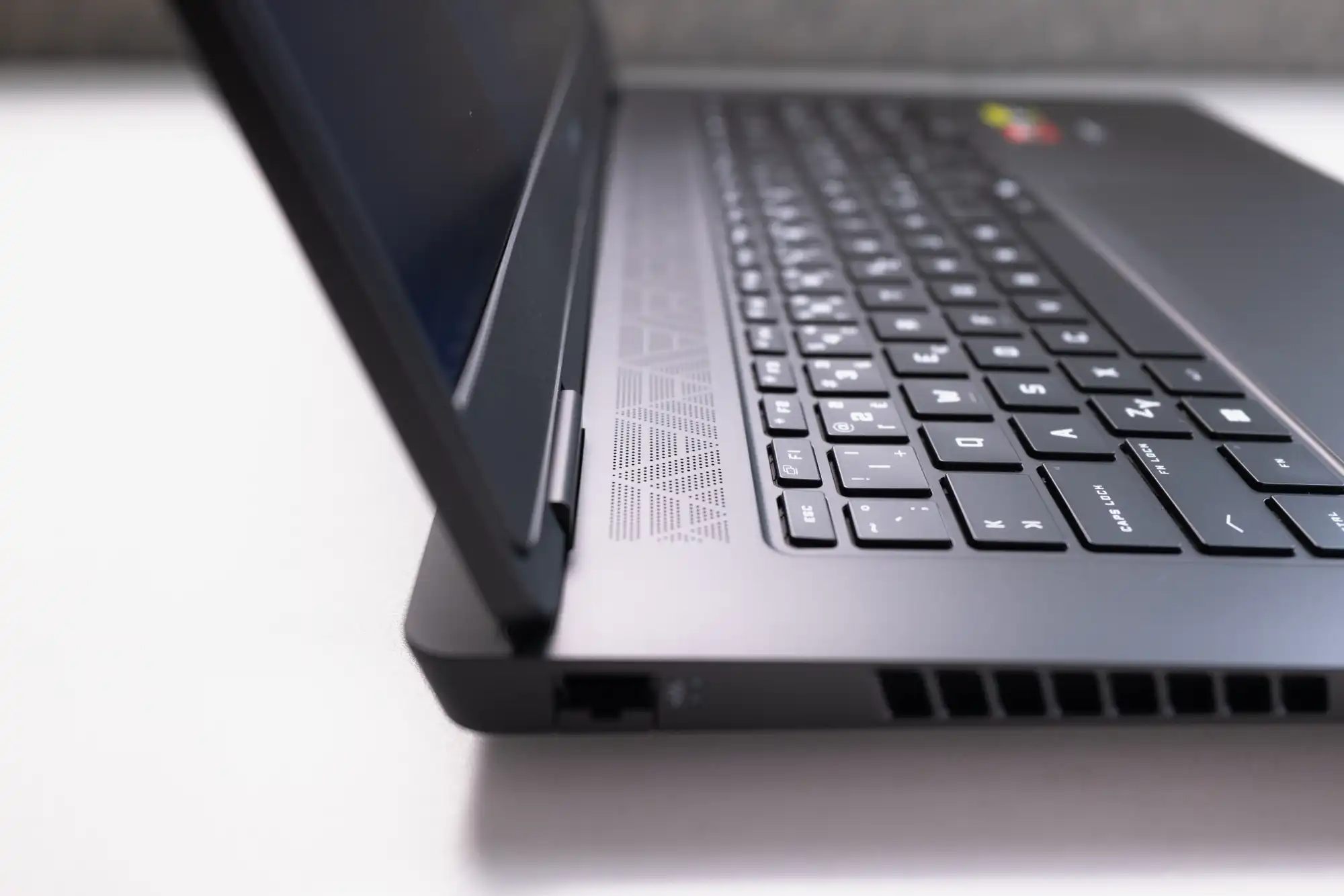 Silu hardvéru vo vnútri tak prezráda len vyššia stavba a mohutné výduchy chladenia. Tie sú umne smerované výhradne dozadu, takže odvádzané teplo nebude pre hráčov nepríjemné. Musíme tiež zdôraznit, že ventilátory patria pocitovo k tým najtichším spomedzi všetkých herných notebookov, ktoré sme tento rok testovali. Ani na plných otáčkach nijako nerušia zážitok z hier a nenútili nás pridávať hlasitosť či dokonca použiť slúchadlá.