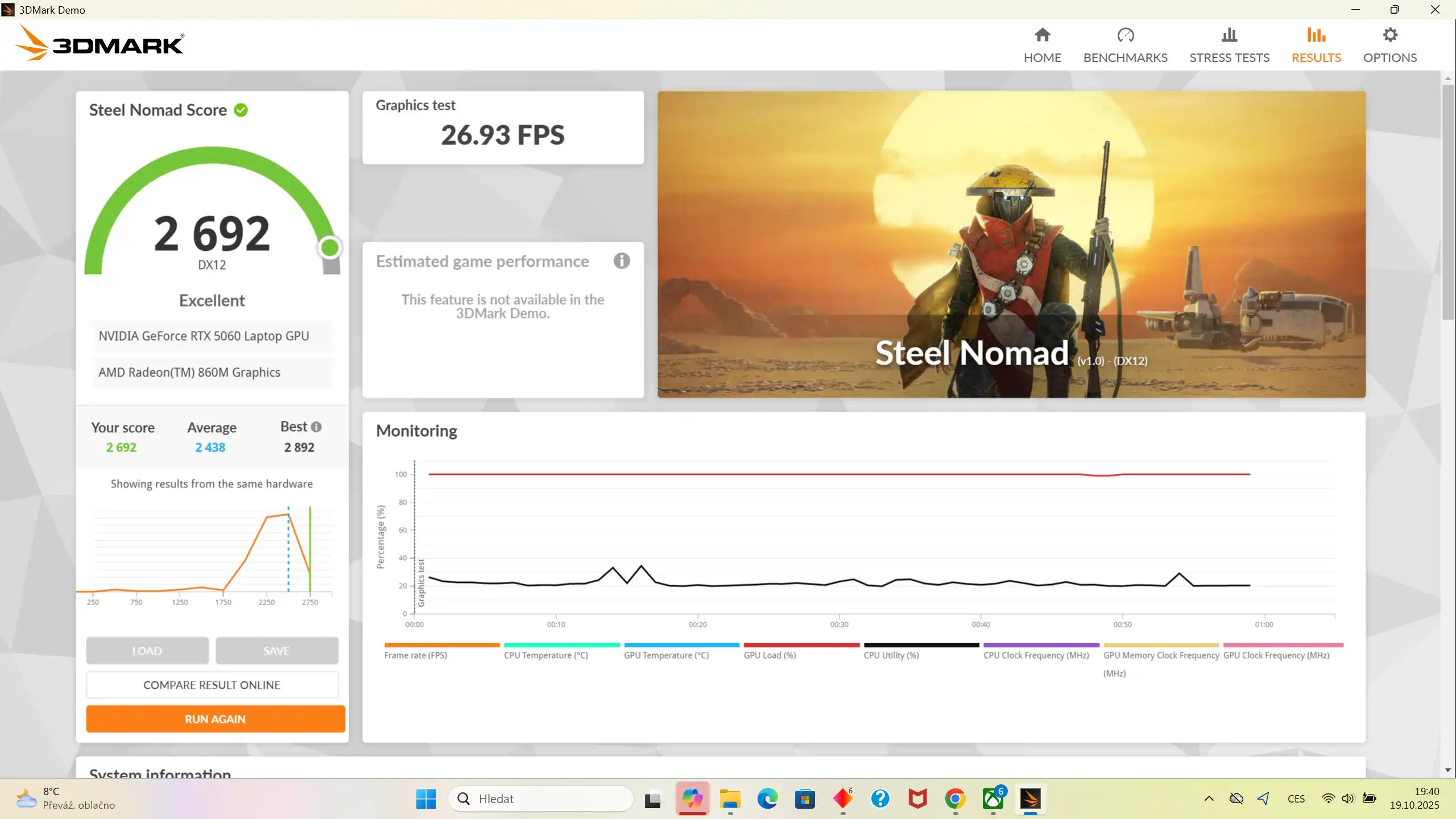 Najobjektívnejším testom výkonu je potom tradičný benchmark 3DMark, podľa ktorého dokonca výkon OMEN 17 prekonal typicky dosahované výsledky pre rovnaký hardvér. Výsledkom bolo až bodov 2 692 bodov.