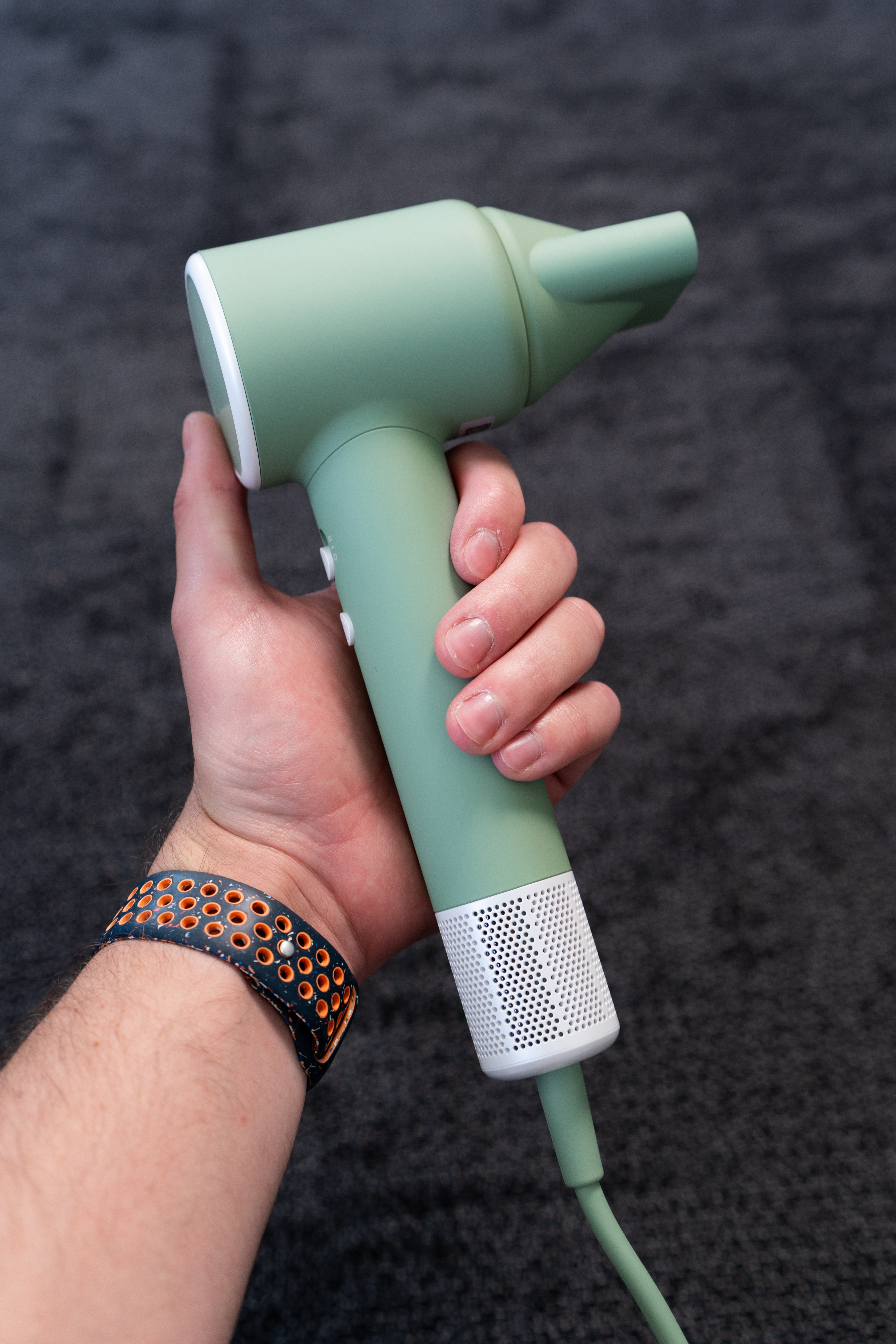 Kľúčovým prvkom je bezuhlíkový motor s rýchlosťou až 120 000 otáčok za minútu, ktorý generuje prúd vzduchu s rýchlosťou približne 65 m/s. Čo znamenajú v praxi tieto údaje? Výrazne kratší čas sušenia, čo oceňujem najmä ráno, keď sa počíta každá minúta. Aj pri nižších teplotách má fén dostatok výkonu, aby vlasy vysušil rýchlo a rovnomerne. Keďže má spomínaný bezuhlíkový motor, človek pri dlhšom používaní nepociťuje nepríjemný zápach spálenín a hlavne je to aj bezpečnejšie.