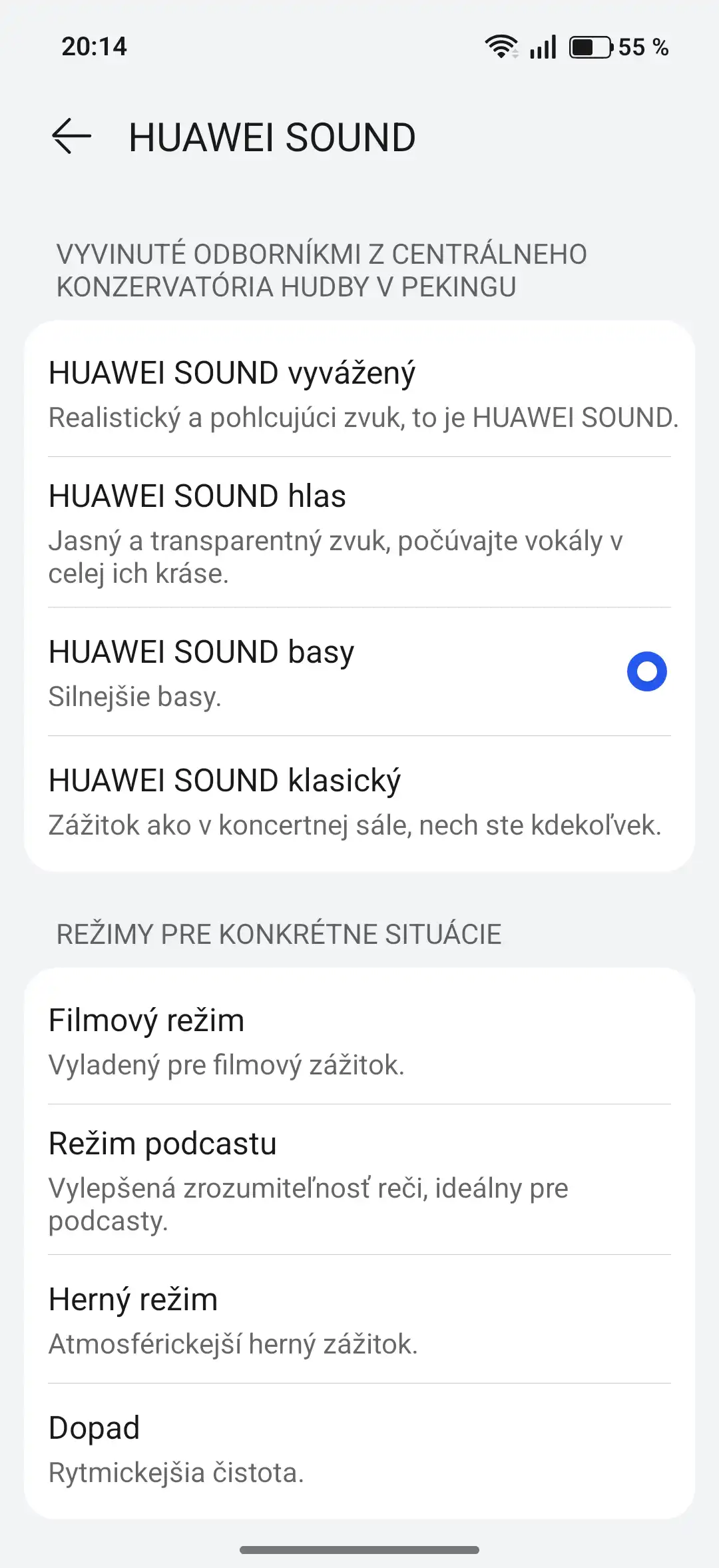 Stiahnite si ju určite z obchodu AppGallery, keďže v Google Play sa nenachádza. To je asi najväčšie mínus všetkých slúchadiel Huawei, avšak toto budete riešiť len pri prvotnom párovaní. Potom stačí už len používať. V aplikácii sa nachádzajú všetky nastavenia, vrátane ekvalizéru. Ten si môžete upraviť podľa seba alebo využiť jeden z prednastavených. K dispozícii sú ekvalizéry HUAWEI SOUND, konkrétne Balanced, Voice, Classical a Bass.