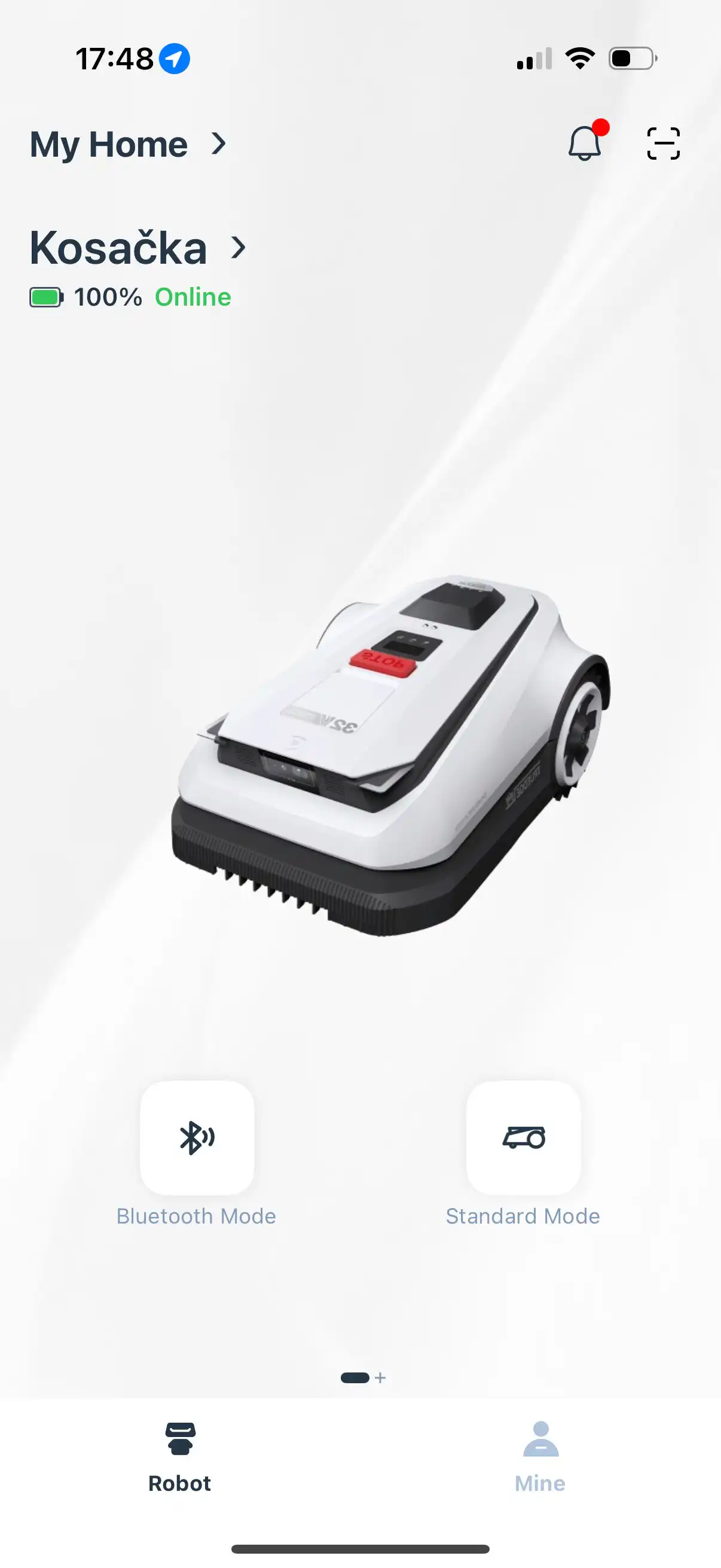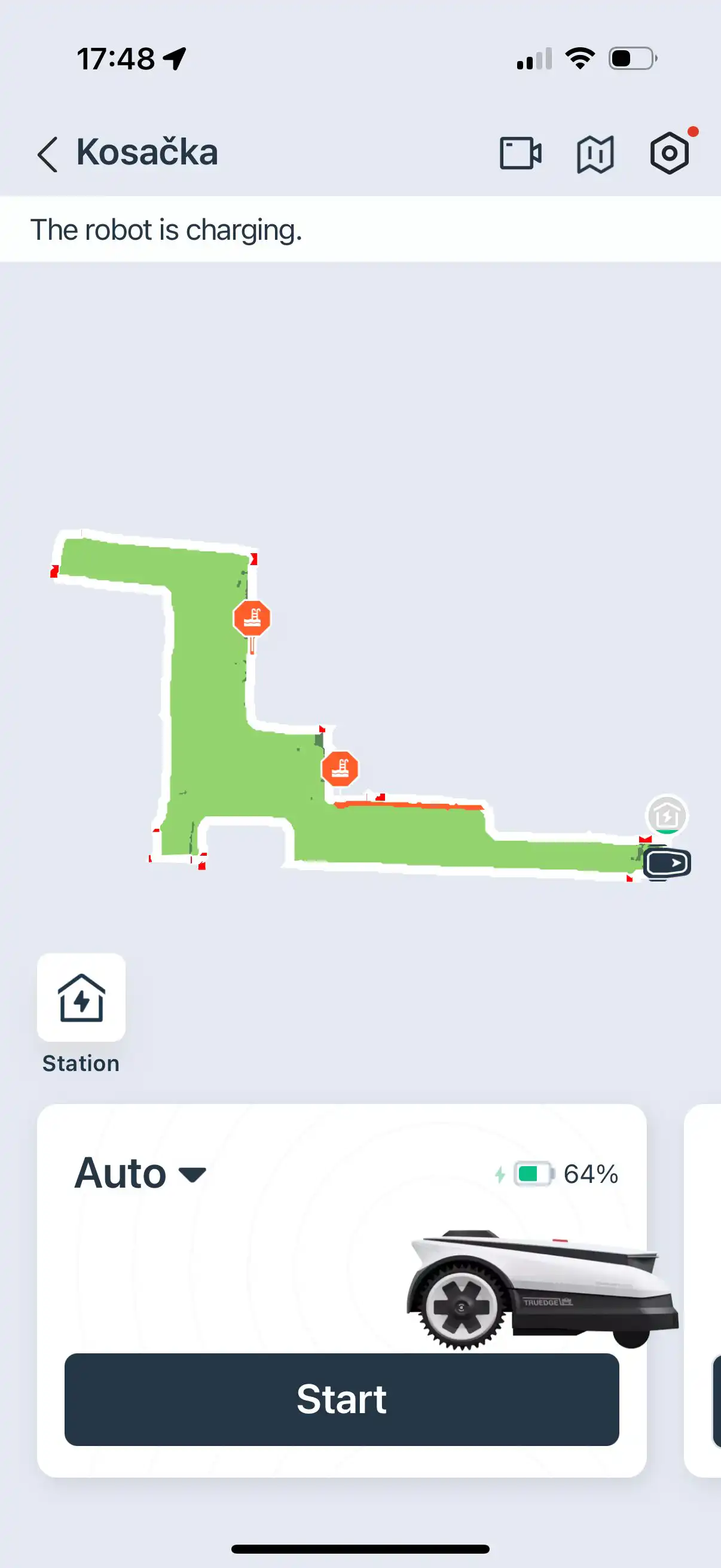 Kosačka sa k vášmu smartfónu pripojí cez Bluetooth a vy ju pomocou joysticku môžete ovládať ako hračkárske autíčko. Týmto spôsobom vytvoríte mapu záhrady manuálne. Samozrejme, k dispozícii je aj automatické vytvorenie mapy záhrady, len za pomoci AI kamery a LiDARU, pričom môžete do tvorby vstupovať.