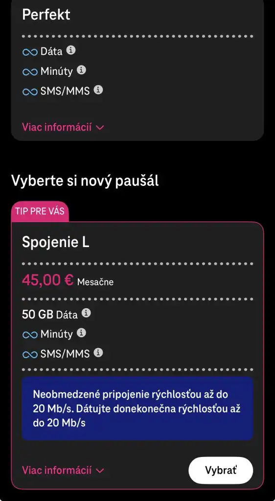 Telekom nové paušály ukrýva aj v mobilnej aplikácii. Tam ich ponúka ako náhradu za váš aktuálny program, ktorý však meniť nemusíte, ak ste s ním spokojní. V praxi ide o kompromis medzi cenou a komfortom.
