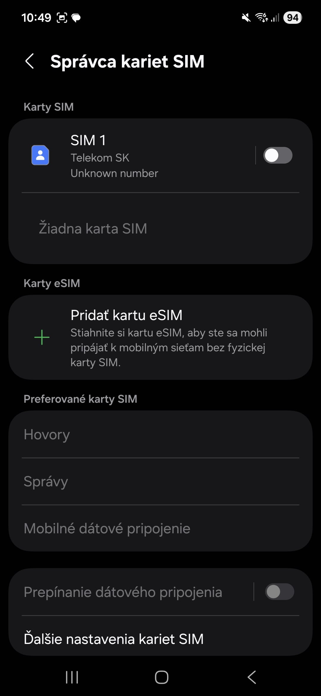 - Otvorte nastavenia – prejdite do Nastavenia -> Správa SIM-> Pridať SIM/eSIM kartu -> Preniesť SIM kartu z iného zariadenia (názvy sa môžu líšiť v zavislosti od výrobcu).
