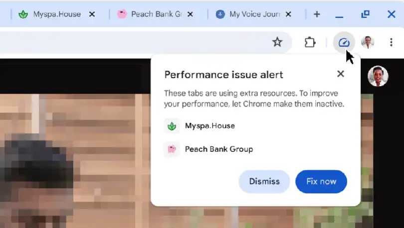 Napríklad v prípade, že máte naraz otvorené viaceré okná, Chrome vám navrhne, aby ste najnáročnejšie okná zatvorili a dosiahli tak väčšiu rýchlosť počas prehľadávania. Chrome vás na to upozorní prostredníctvom výzvy „Výkonnostný problém“ a deaktiváciu môžete vykonať buď manuálne alebo rovno cez tlačidlo „Opraviť teraz“. Ak si však takéto hlásenia neželáte, môžete nástroj vypnúť v nastaveniach, keďže ide o voliteľnú funkciu.