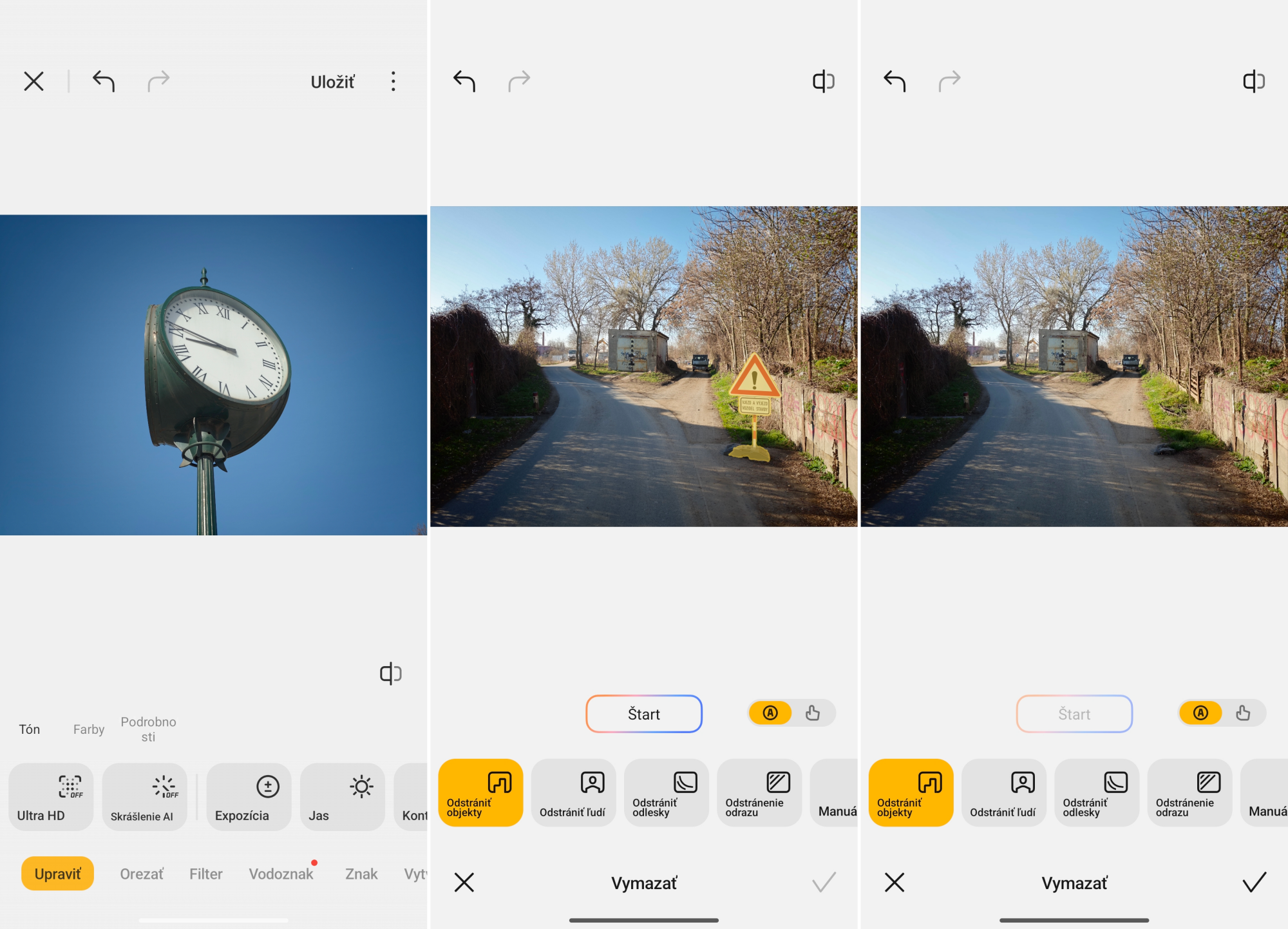 Vymazávanie nechcených objektov alebo dokonca rozširovanie obrázkov (generative fill) je celkom logicky priamo v Galérii, hľadajte ho však v úplne na konci, v karte „Vytvoriť“. Tu je možné prstom označiť ľubovoľný objekt, nechať systém chvíľku pracovať a potom sa tešiť z naozaj dobrých výsledkov, ako vidno na screenoch nižšie.