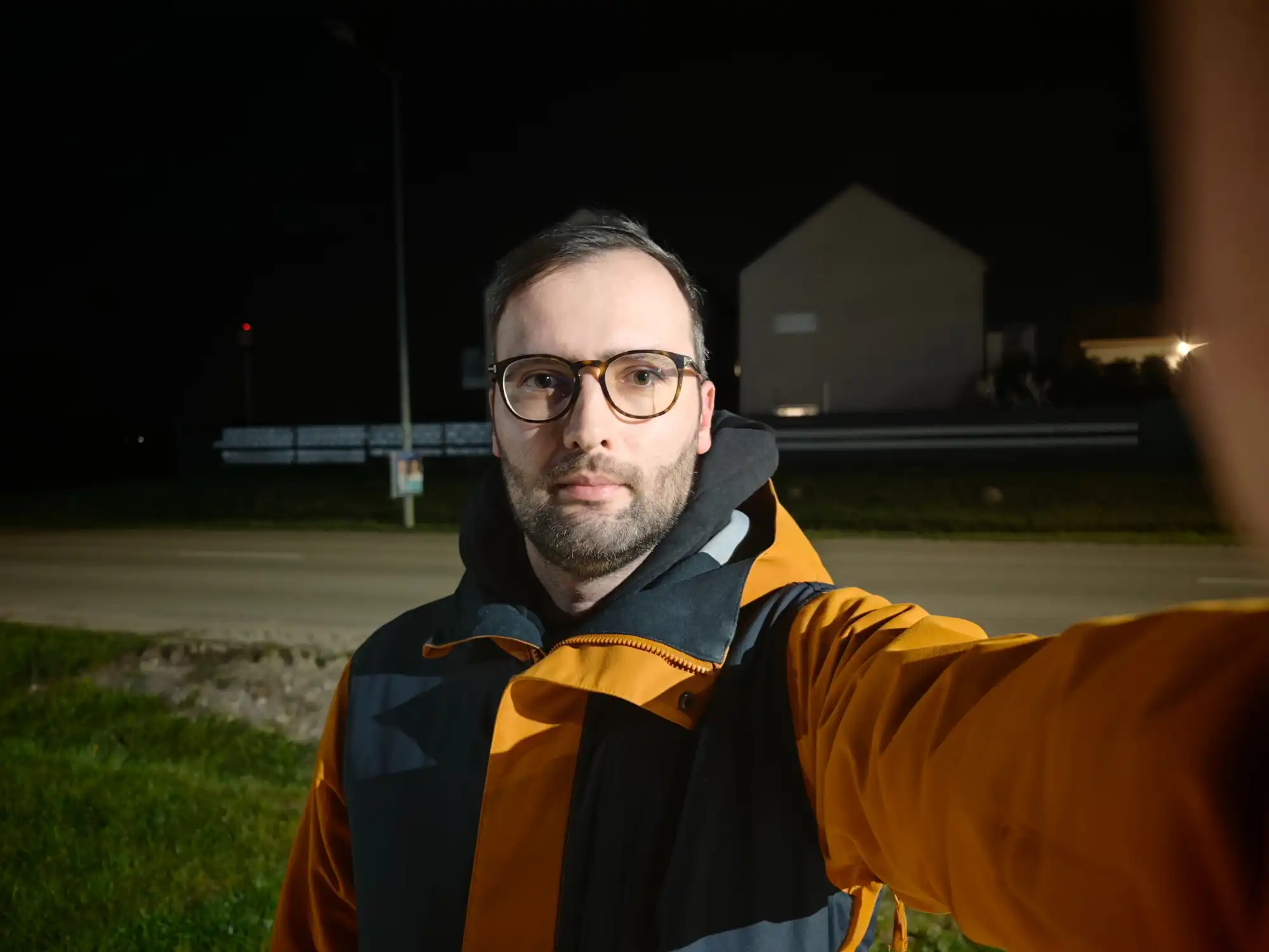 Príkladom je napr. moja selfie robená hlavným fotoaparátom – ak sa vám zdá, źe mi do tváre zasvietil blesk, nie je to pravda, išlo o svetlo z bežnej pouličnej lampy. Presnejšie, z poriadne vzdialenej pouličnej lampy, stál som totiž aspoň 15 metrov od nej.