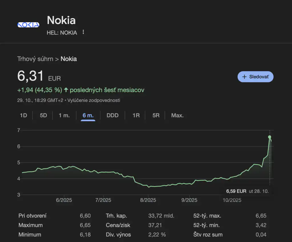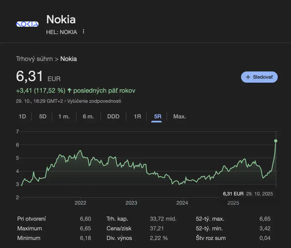 Okamžite po oznámení investície poskočili akcie Nokie na najvyššiu úroveň za takmer desať rokov, čo dokazujú aj štatistiky Google Finance. Hovoríme tu o náraste až cez 20 %. Investori v tejto spolupráci vidia signál, že Nvidia sa chce rozšíriť mimo tradičné pole čipov a vstúpiť hlboko do sektora telekomunikačnej infraštruktúry.